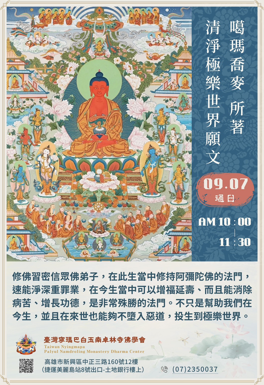 【噶瑪喬麥所著清淨極樂世界願文】日期:09月07日 (週日)時間:上午10 : 00~11 : 30